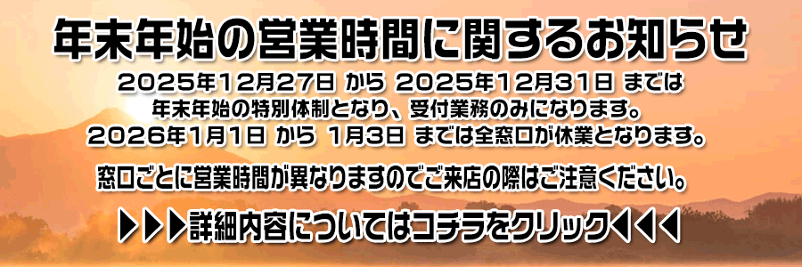 【重要】年末年始の営業時間等に関するお知らせ